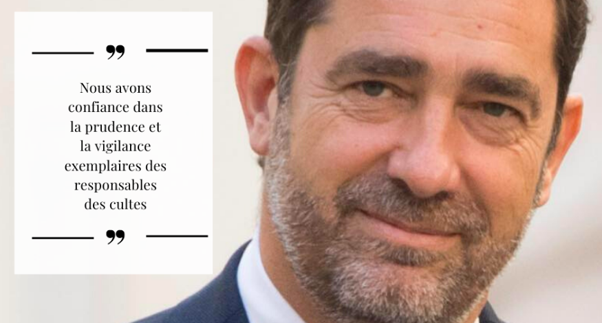 Cette décision est le fruit du dialogue riche et permanent que nous avons entretenus avec les cultes depuis le début de cette crise sanitaire. Nous avons travaillé et trouvé une solution pour permettre la reprise des cérémonies religieuses tout en assurant la protection sanitaire de chacun. Notre volonté de protéger les Français et de limiter la circulation du virus n’a pas changé. Nous avons confiance dans la prudence et la vigilance exemplaires des responsables des cultes. Déclare Christophe Castaner, ministre de l’Intérieur.